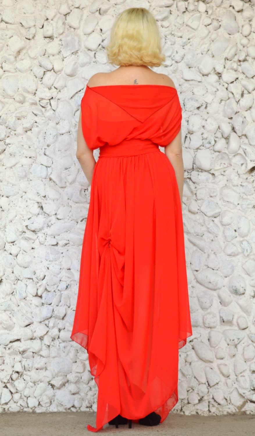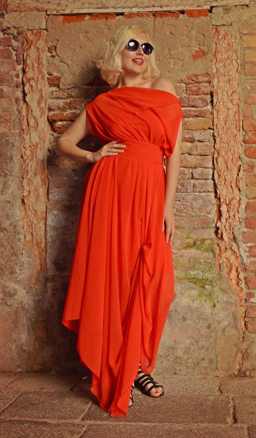 فستان ماكسي أنيق وأنيق. هذا القفطان الصيفي مناسب جدًا لحفلات الكوكتيل أو الحفلات على الشاطئ. المظهر الناري الأحمر سوف يجذب انتباه الجميع بالتأكيد.