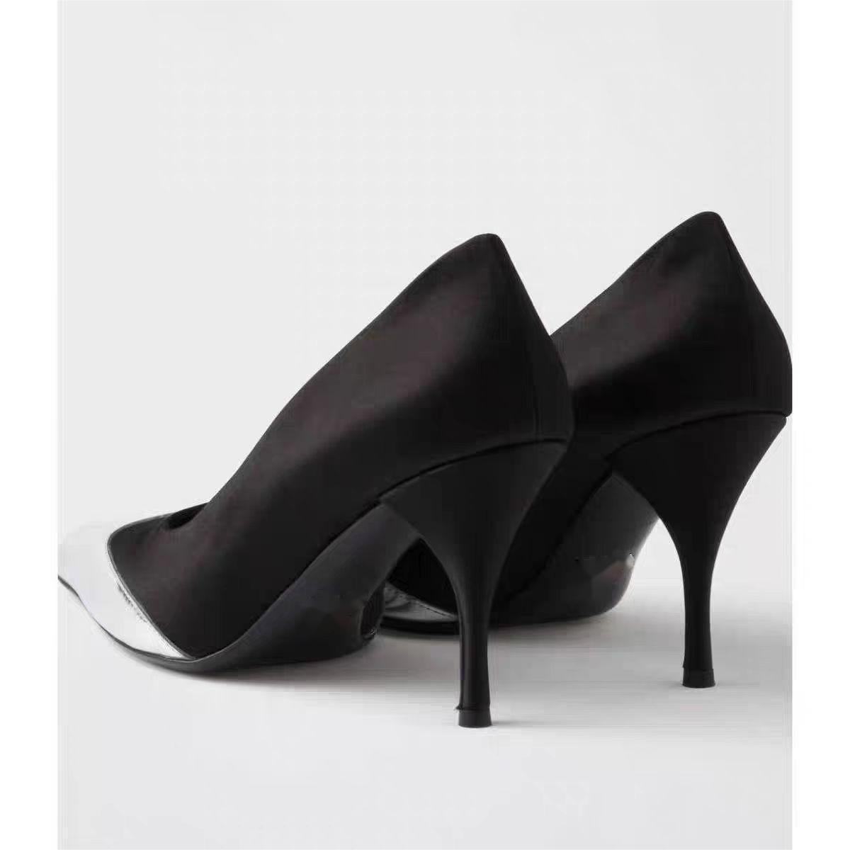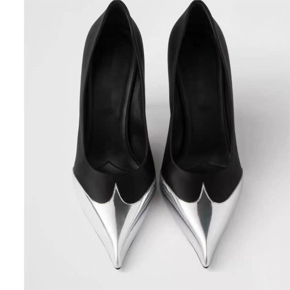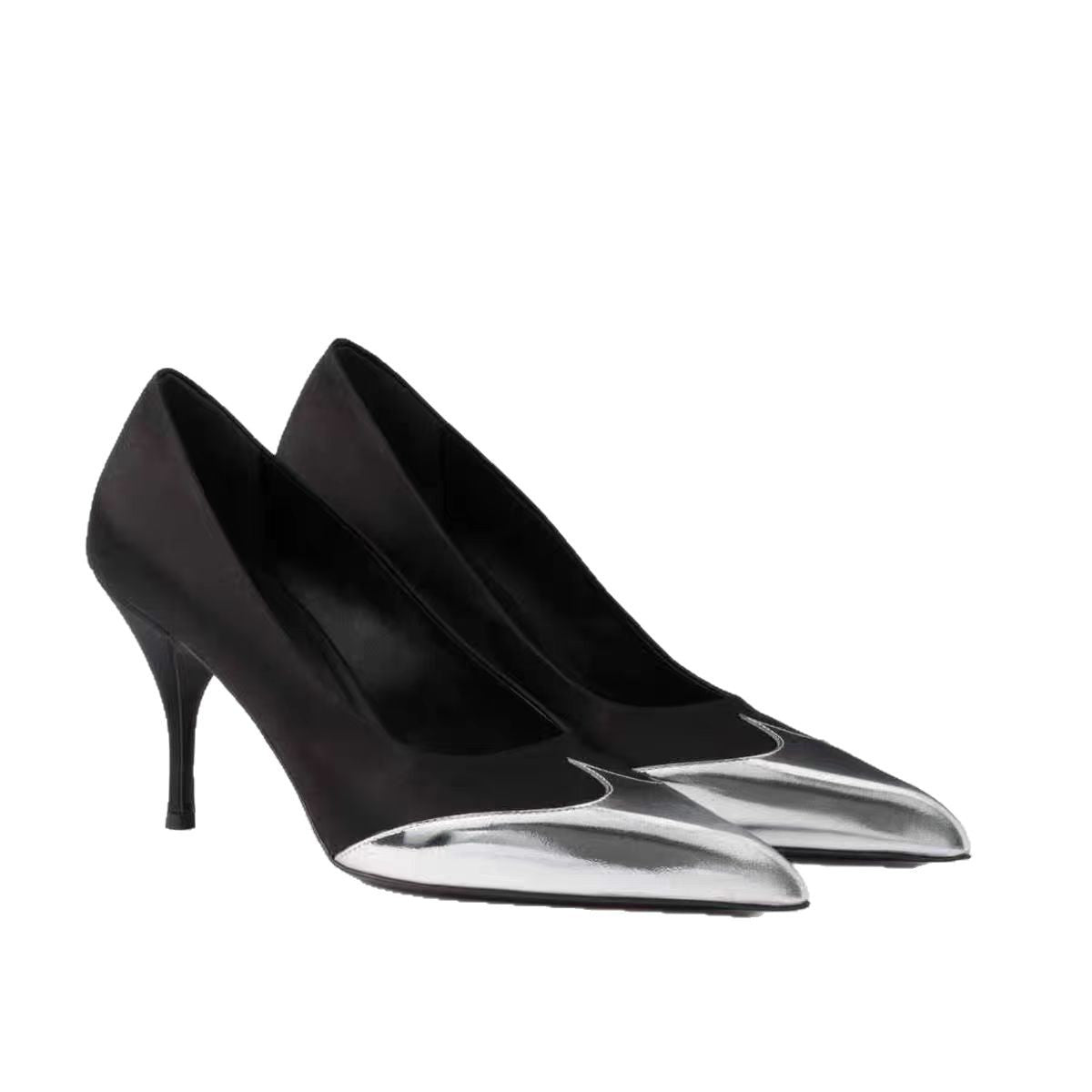 حذاء نسائي أنيق باللون الأسود يتميز بمقدمة مدببة أنيقة مع غطاء معدني فضي وكعب رفيع وعالٍ - مثالي لإضفاء لمسة عصرية على الأناقة الكلاسيكية. الخامة الخارجية: ساتانخامة النعل: مطاطخامة النعل الداخلي: بولي يوريثانالبطانة الداخلية: جلد صناعي
