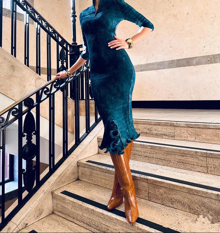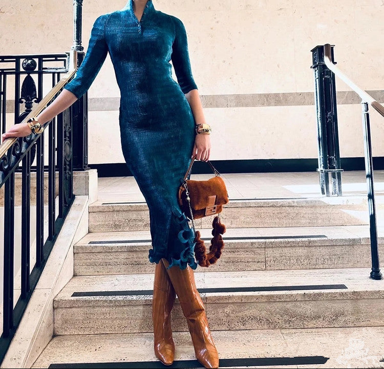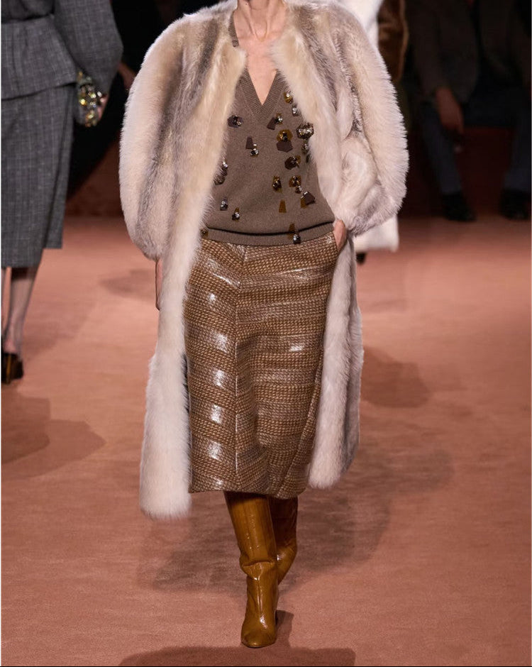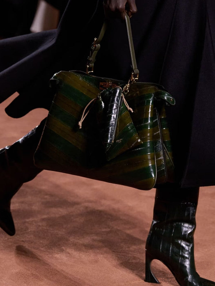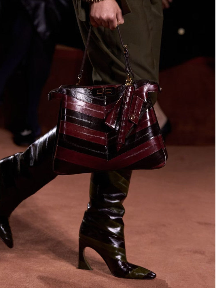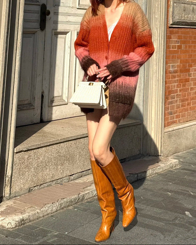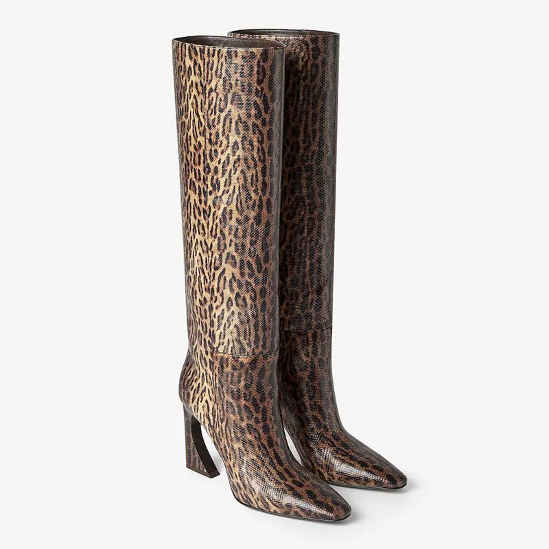 حذاء أنيق بلون الكراميل، مصنوع من جلد ناعم، يتميز بمقدمة مدببة أنيقة وكعب متوسط الارتفاع. تصميمه الذي يصل إلى الركبة يضفي لمسة من الأناقة الكلاسيكية على الإطلالات الكاجوال والأنيقة.