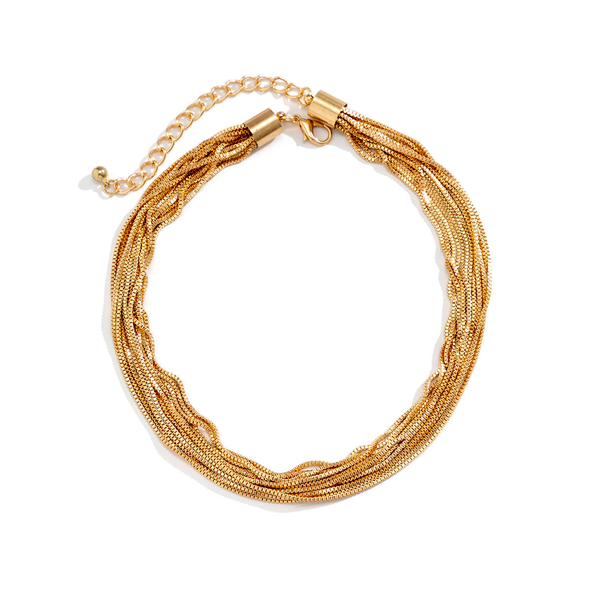قلادة عصرية مميزة مصنوعة من سلاسل رقيقة متعددة الخيوط. صُممت هذه القلادة متعددة الطبقات لإضفاء لمسة من التنوع والتألق، وتتميز بمشبك لامع وحلق تمديد قابل للتعديل لمقاس مثالي. متوفرة باللونين الذهبي والفضي، وتُكمل أي إطلالة، من النهار إلى المساء.