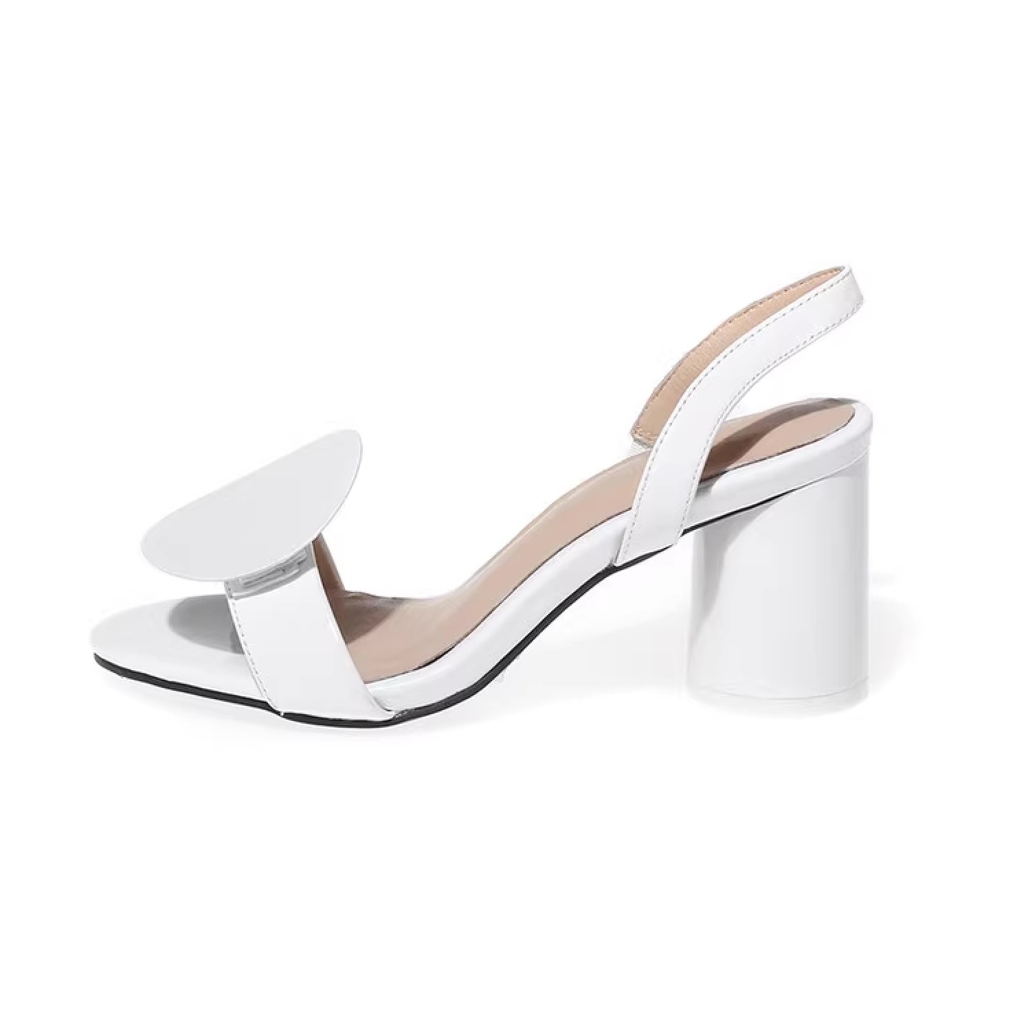 جريئة وفنية، تتميز هذه الصنادل غير المتماثلة بحزامين أحدهما مربع والآخر دائري من الجلد الأبيض الناعم. لمسة نحتية أنيقة تُضفي لمسة عصرية، مثالية لجذب الأنظار مع كل خطوة.