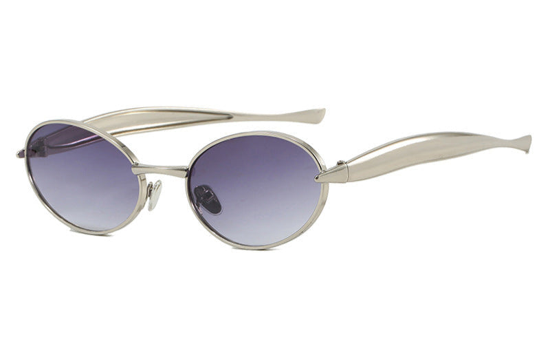 تتميز هذه النظارات الشمسية الأنيقة والمستقبلية بإطار بيضاوي وأذرع معدنية مصقولة وتصميم انسيابي. تضفي العدسات الملونة لمسة لونية جريئة، بينما يضمن تصميمها خفيف الوزن راحة يومية وأناقة مميزة.