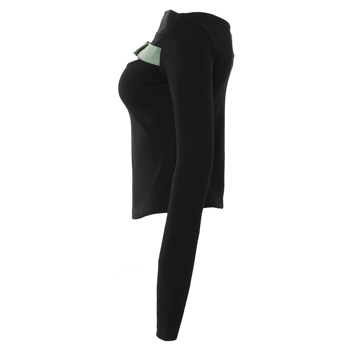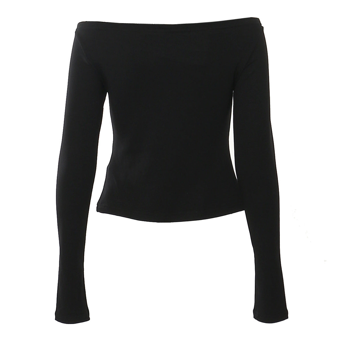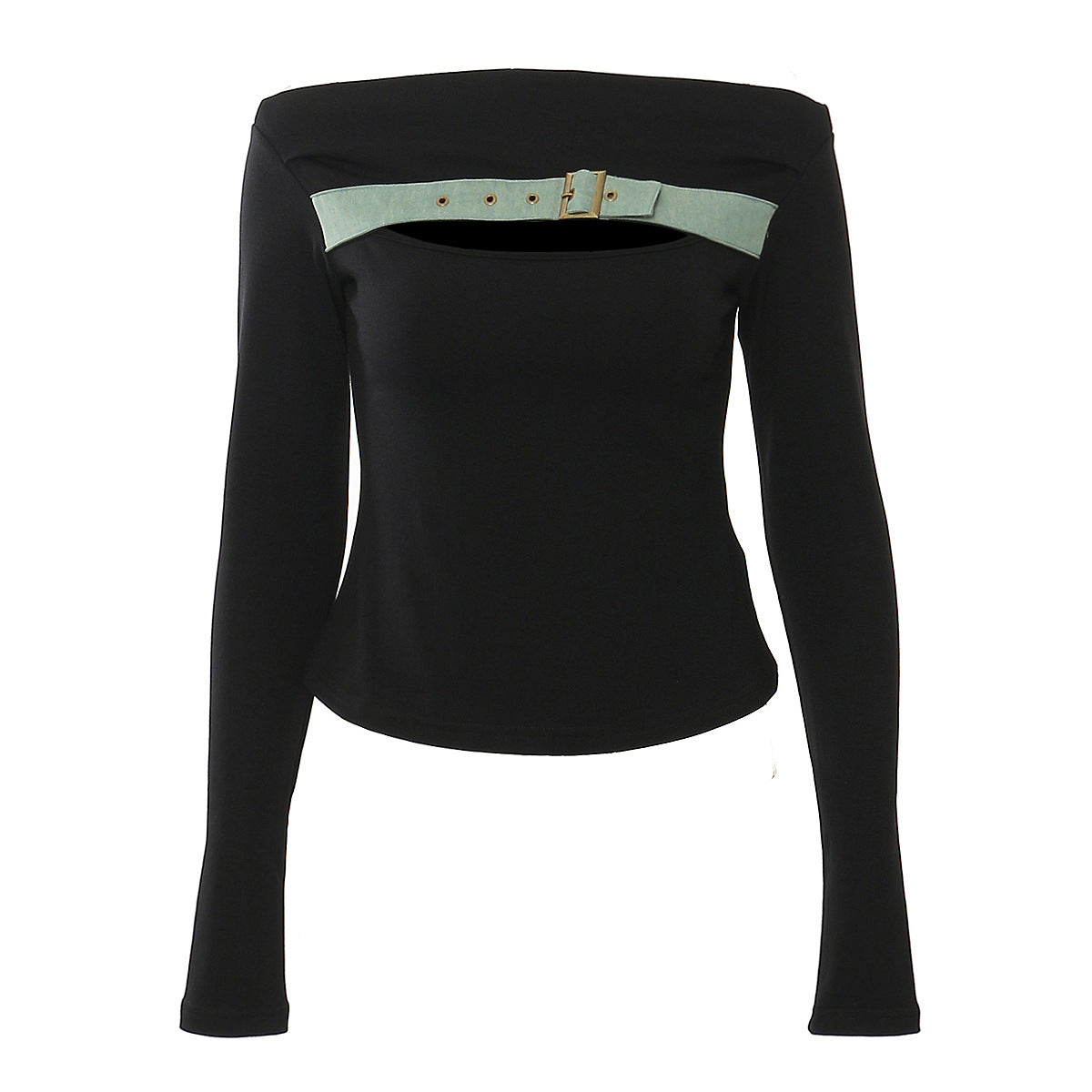 بلوزة سوداء أنيقة مكشوفة الكتفين، تتميز بحزام إبزيم بارز على خط العنق لإضفاء لمسة عصرية جريئة. مصممة بأكمام طويلة ضيقة وقصة بسيطة، مثالية لإطلالات مسائية راقية أو لتنسيقها مع بنطلونات أو تنانير رسمية.