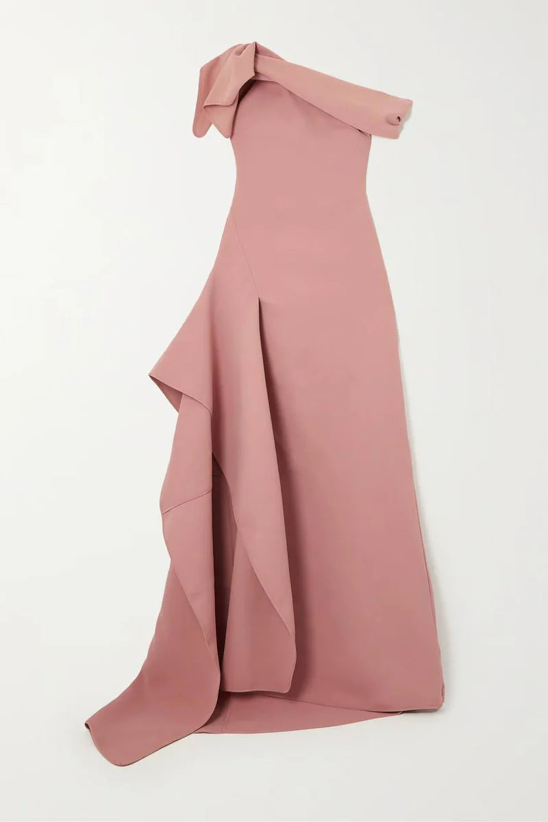 فستان غير متماثل مكشوف الكتفين منحوت – أولينا