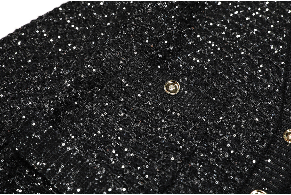 Elegant knit jacket adorned with shimmering sequins and gold buttons, featuring a matching waist belt for a defined silhouette. Perfect for elevating day-to-night looks with effortless glamour. Fabric name: viscose fiber Size Bust (cm) Waist (cm) Hips (cm) Shoulder (cm) Length (cm) Sleeve (cm) S 96 90 — 38 69 65 M 100 94 — 39 70 66 L 104 98 — 40 71 67 XL 108 102 — 41 72 68