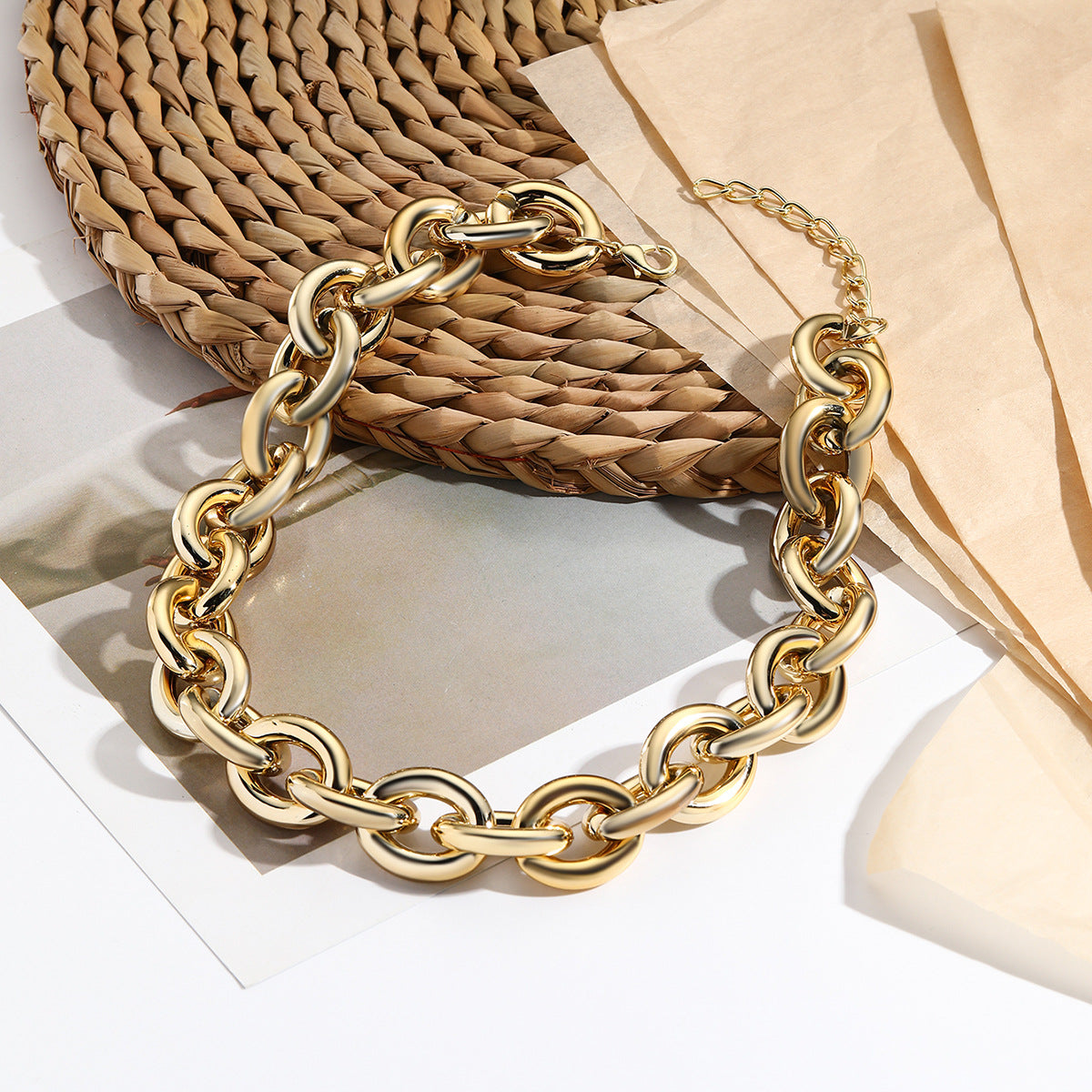 A bold and modern necklace featuring smooth circular rings and a polished gold finish. Its simple yet elegant design makes it perfect for layering or wearing alone for a statement look. Lightweight and adjustable, it adds a touch of luxury to any look, from casual to evening events.