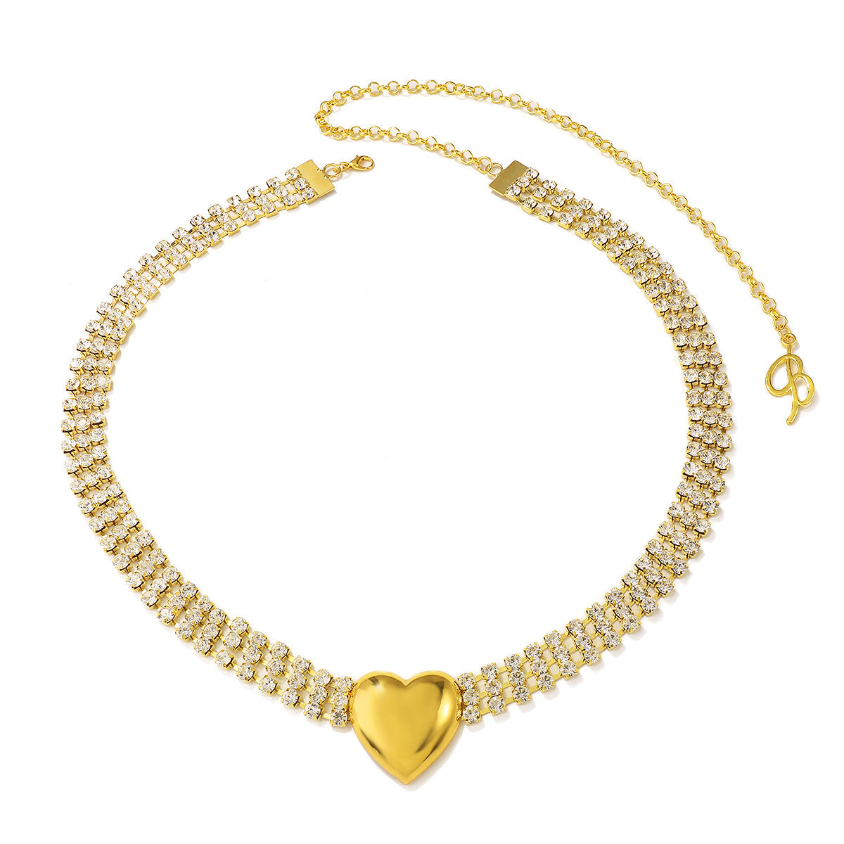 A luxurious double-rowed waist necklace accented with a bold metal heart pendant. Designed to sparkle with every step, the necklace is perfect for showcasing your curves with a touch of romance and elegance. Whether worn over a dress or with a cropped blouse, it's a statement piece for evening wear or special occasions.