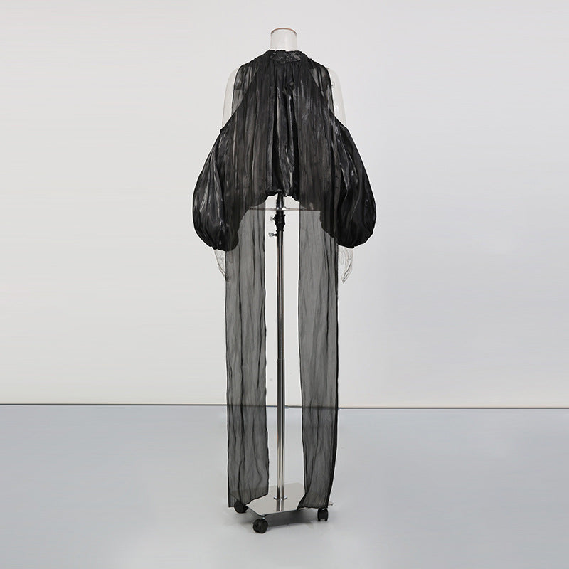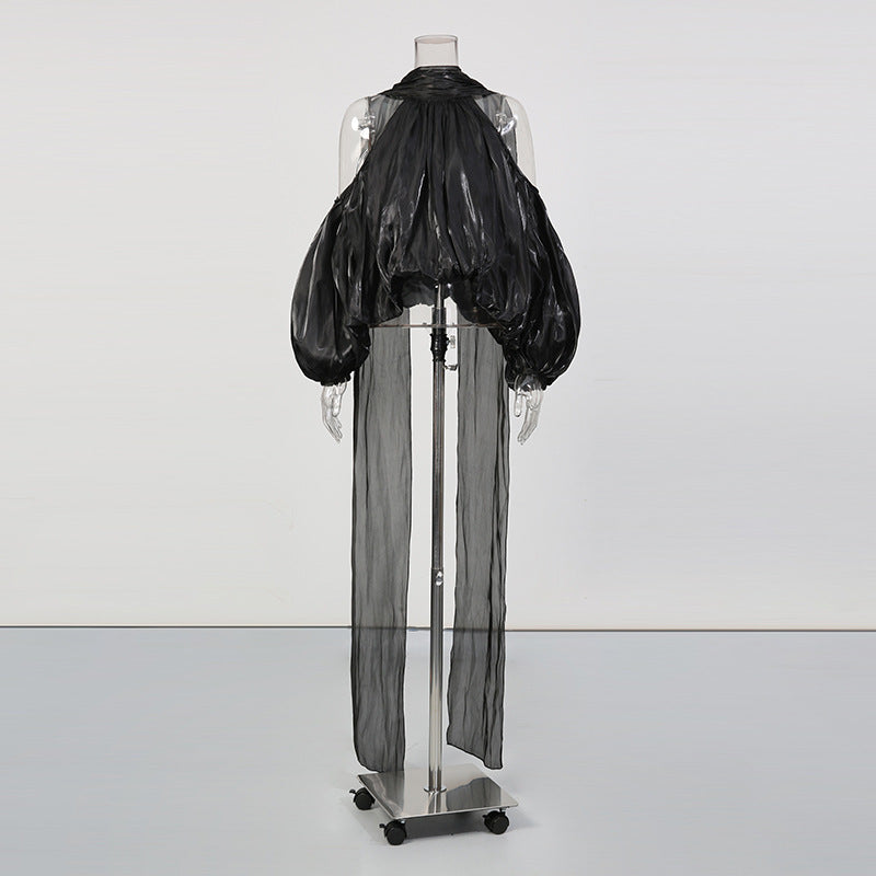 halter neck blouse with draped chiffon volume – IVORY – missodd.com