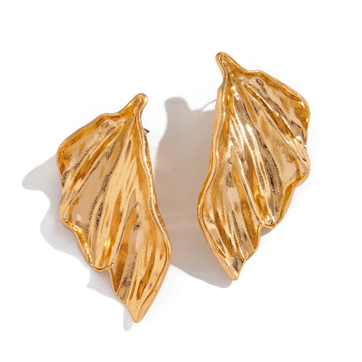 Sculptural, bold, and nature-inspired, these earrings are designed in the shape of flowing leaves, exuding natural elegance and artistic charm. Crafted with a lustrous finish in shades of silver and gold, their textured surface adds depth and dimension, capturing the light with every movement. Lightweight and eye-catching, they are perfect for elevating daytime and evening looks.
