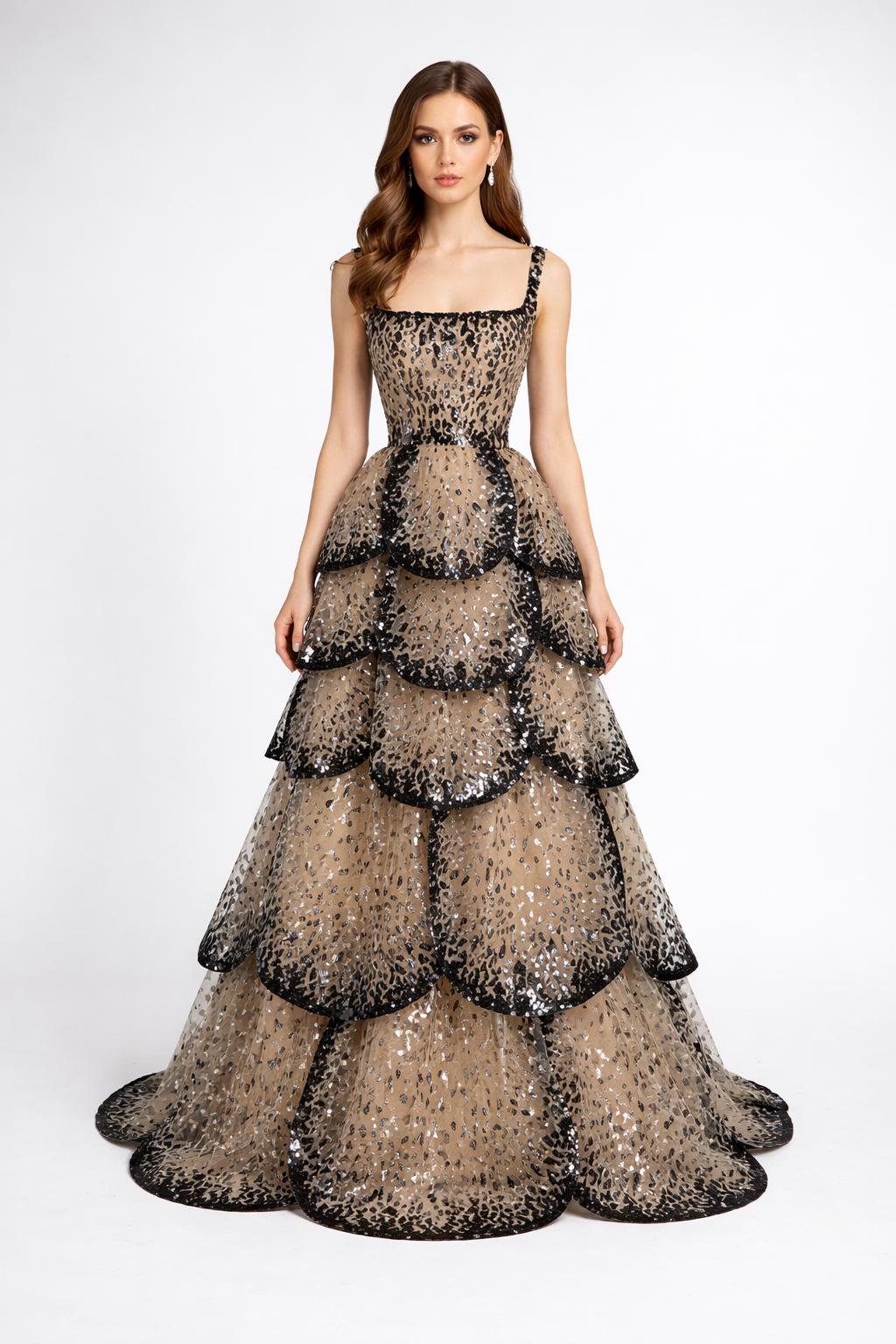 long sleeve ball gown with layered leopard sequin skirt – SAVANNA