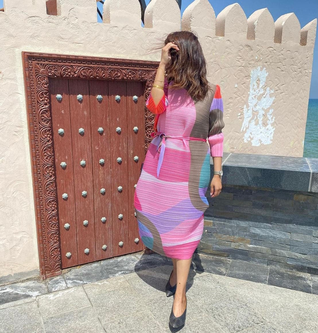 الخامة حلوة الخياطة حلوة المقاس للاسف كبير مره اخذت ميديم لكن وصلني كبير مره خوذوا اصغر من مقاسكم