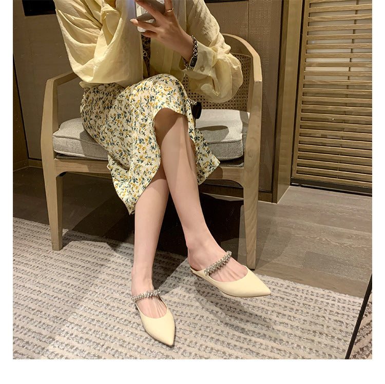 A stylish pointed-toe flat featuring a sparkling crystal strap at the upper. Perfect for adding a touch of sparkle to casual and elegant looks, these shoes offer a stylish look and all-day comfort.
