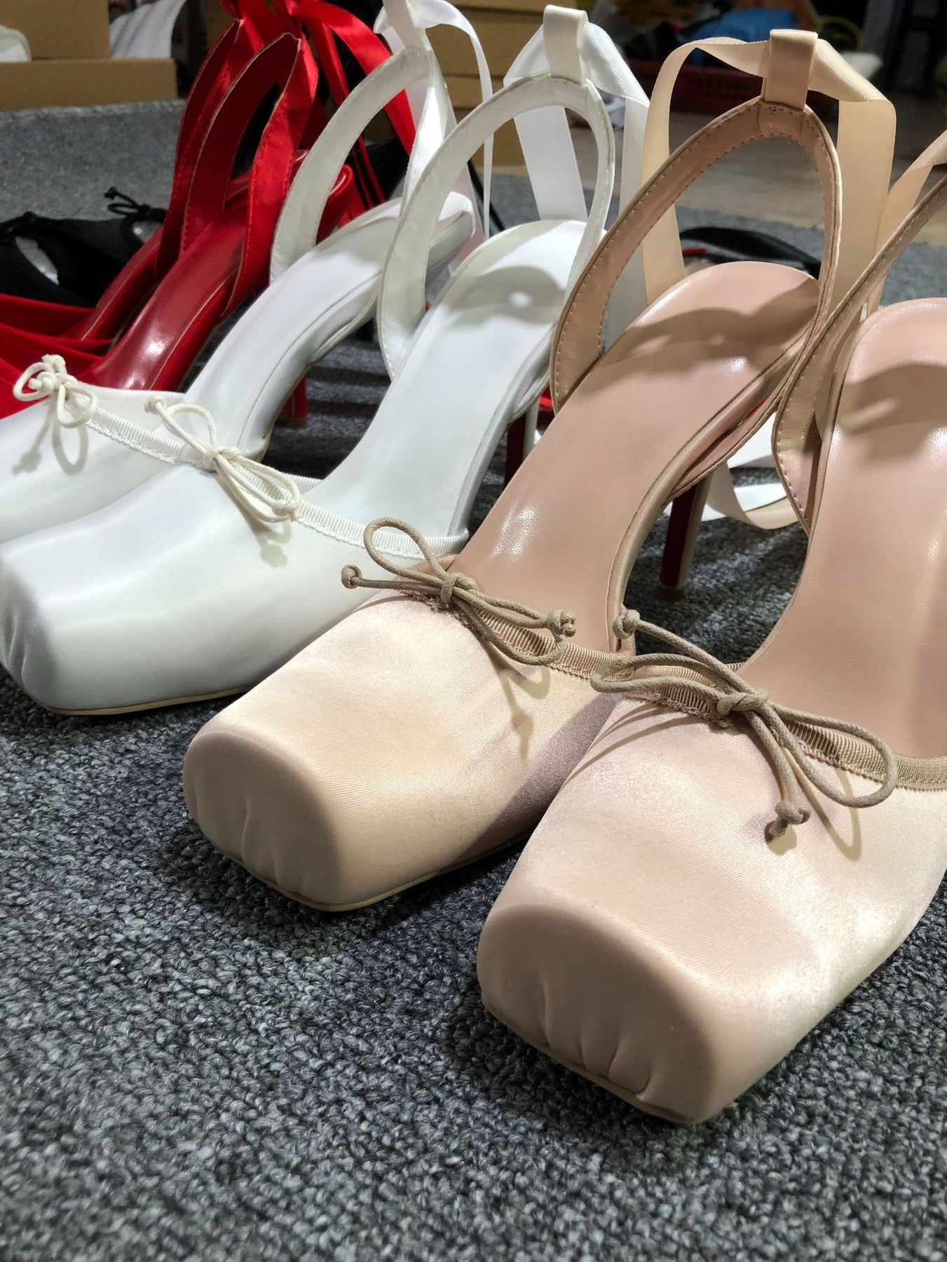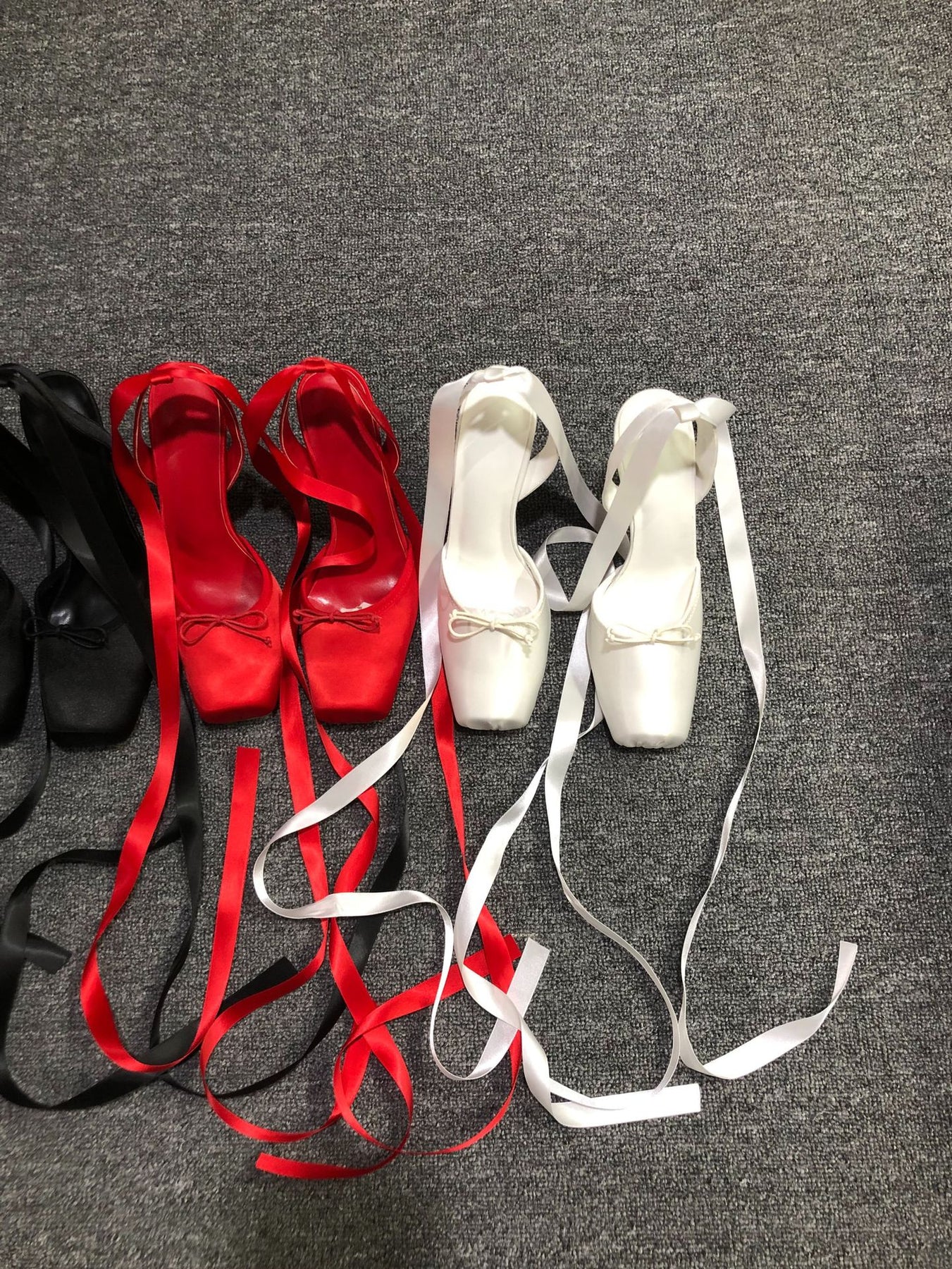 Elegant black satin heels featuring a soft square toe, delicate front bow, and long ankle ribbons for a romantic wraparound finish. Elevated on a slim high stiletto, they exude timeless ballerina-inspired charm. High Heel Size China Size (mm) Sports Shoe Size Foot Length (mm) Foot Girth (mm) 33 215 33.5–34 211–215 196–200 34 220 34.5–35 216–220 201–205 35 225 35.5–36 221–225 206–210 36 230 36.5–37 226–230 211–215 37 235 37.5–38 231–235 216–220 38 240 38.5–39 236–240 221–225 39 245 39.5–40 241–245 226–230 40 250 40.5–41 246–250 231–235