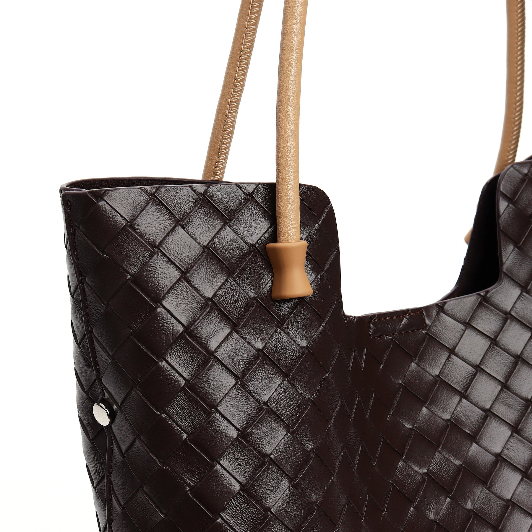 woven leather tote bag with contrast shoulder straps - RIWA