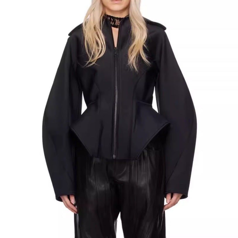 Plissiertes Oberteil mit ausgestellten Ärmeln und Maxirock-Set mit Taillengürtel – Rosiny