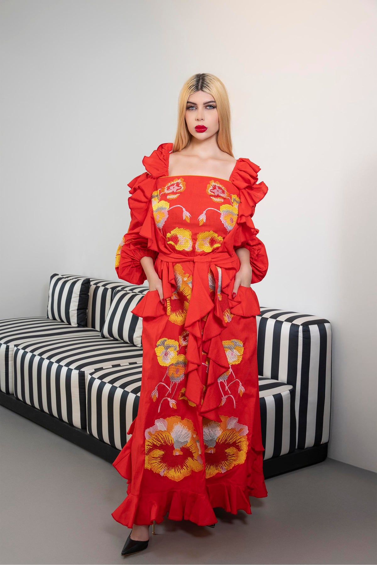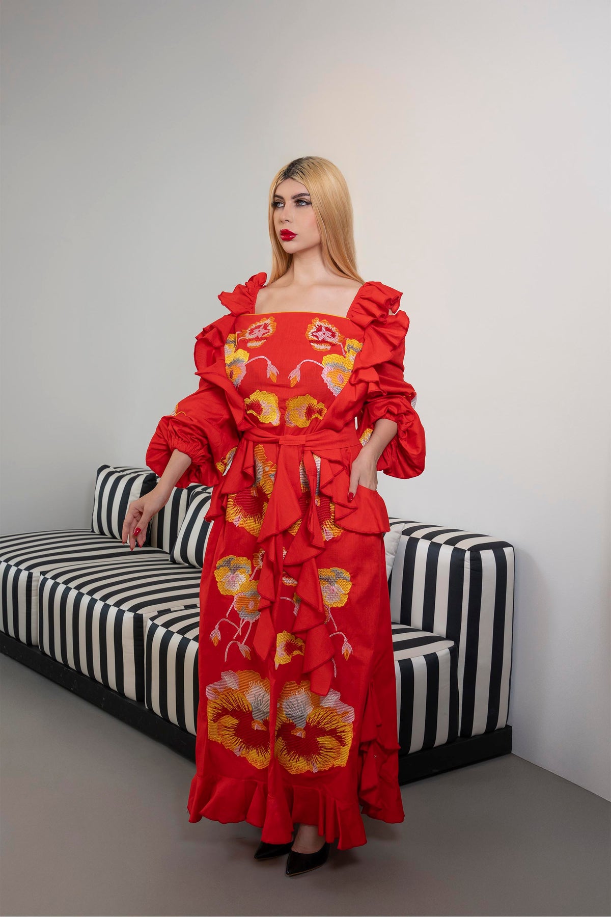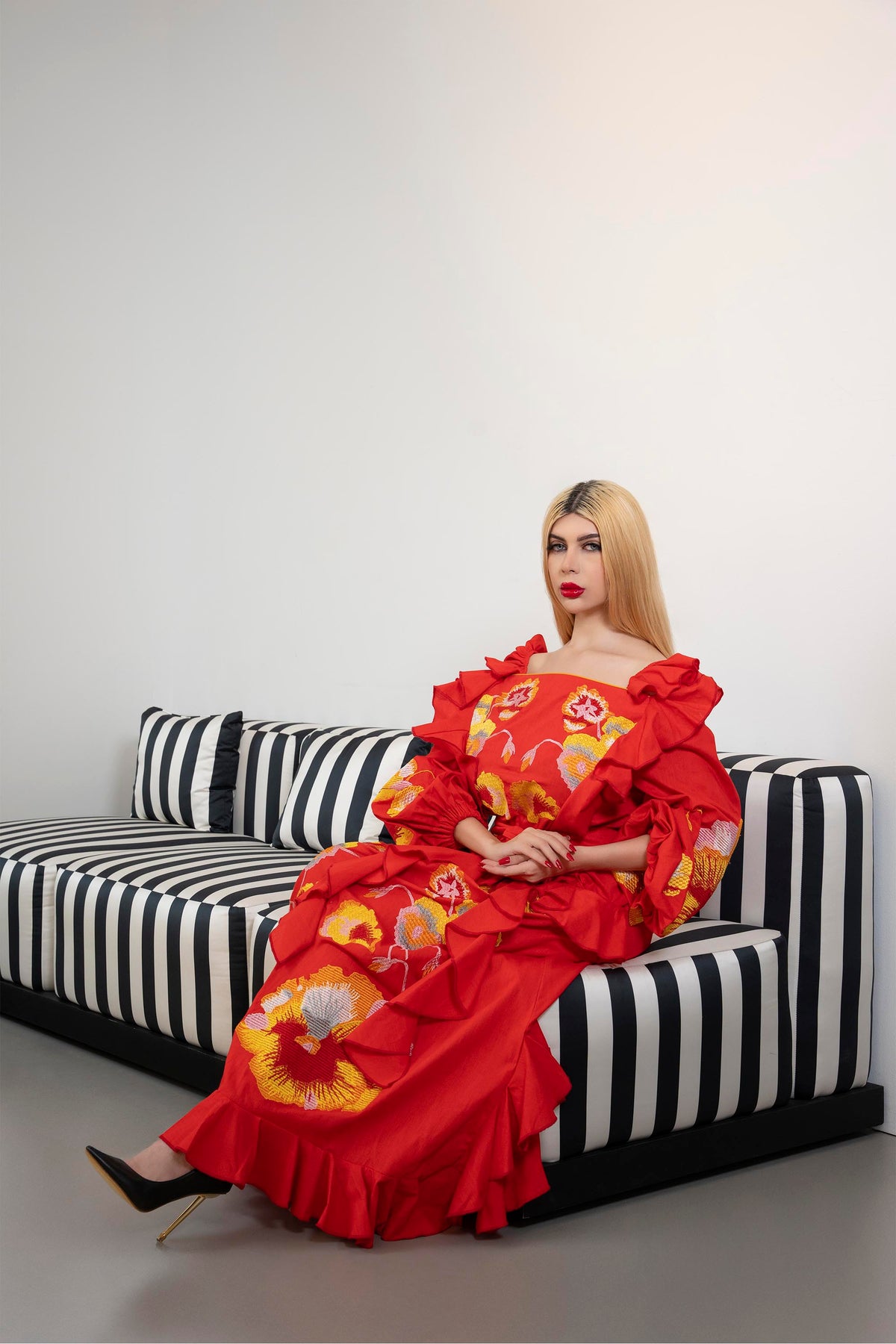 Off-Shoulder Ruffled Maxi Dress with Embroidery – FLAMENCA