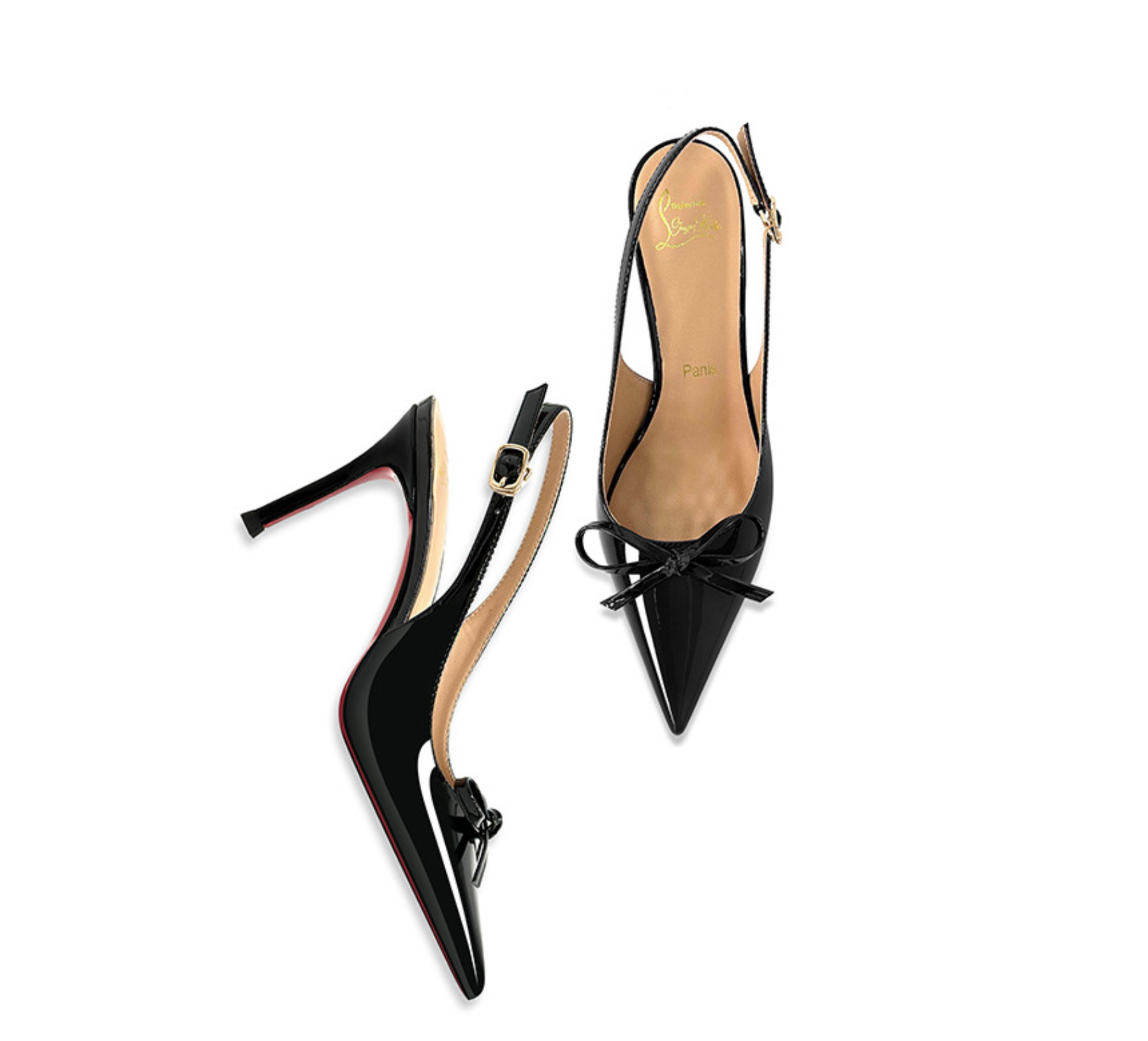 Elegant and refined, patent leather slingback pumps are the perfect blend of sophistication and timeless charm. Crafted from high-gloss patent leather , these pumps exude luxury while offering a modern yet classic appeal. The pointed-toe silhouette creates a sleek, elongated effect, enhancing the foot’s natural shape for a graceful and feminine look. A delicate patent leather bow detail adorns the vamp, adding a romantic and polished touch that elevates the design. Designed for both style and comfort, these pumps feature an adjustable slingback strap with a gold-tone buckle, ensuring a secure and customizable fit. The moderate-height stiletto heel provides an elegant lift while maintaining stability, making them ideal for extended wear at formal events, evening occasions, or office settings.