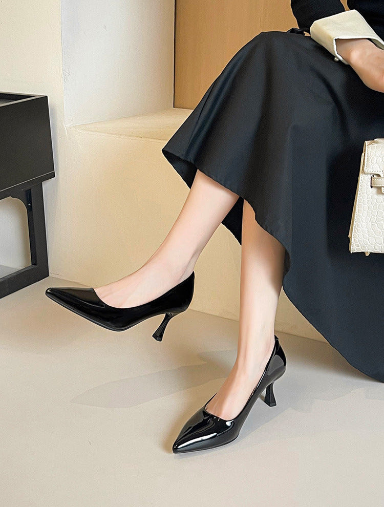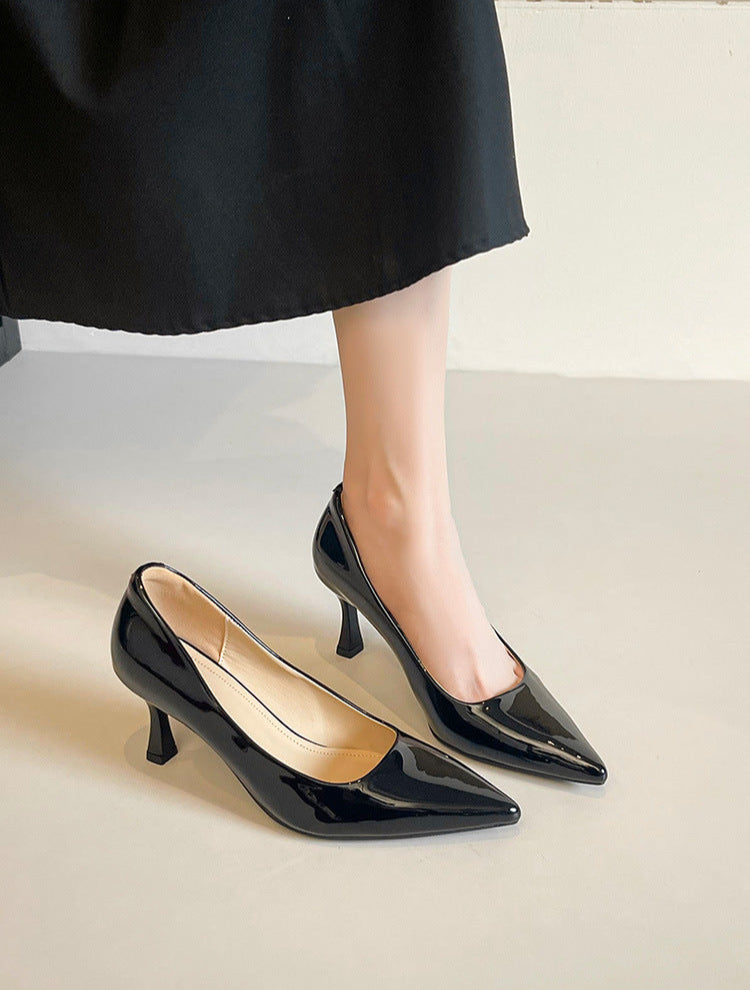 Diese elegante und anspruchsvolle Pumps mit spitzer Zehenpartie sind aus glänzendem schwarzem Lackleder gefertigt für einen polierten Look. signature feature—ein weicher grauer Pelzbesatz an der Vorderseite—verleiht diesem klassischen Design einen luxuriösen Touch. Entworfen mit einem schlanken hohen Absatz und einem weichen goldfarbenen Futter, kombiniert dieser unverwechselbare Schuh mühelos Eleganz und Raffinesse, sei es für Abendgarderobe oder gehobene Anlässe.