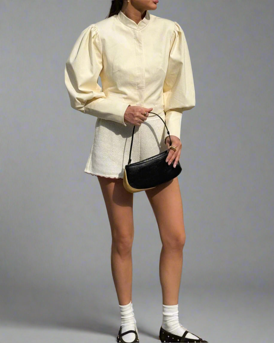Plissiertes Oberteil mit ausgestellten Ärmeln und Maxirock-Set mit Taillengürtel – Rosiny