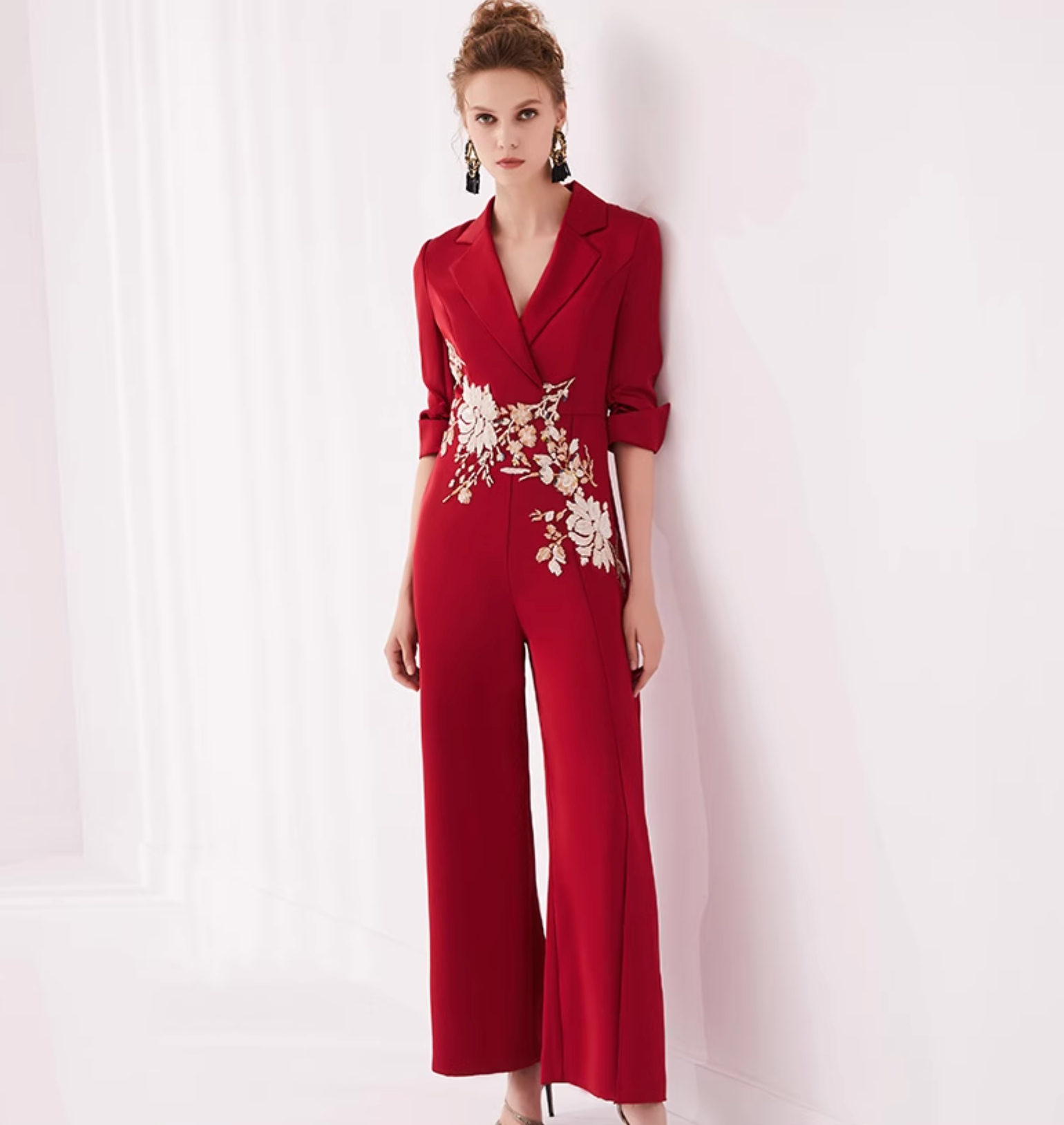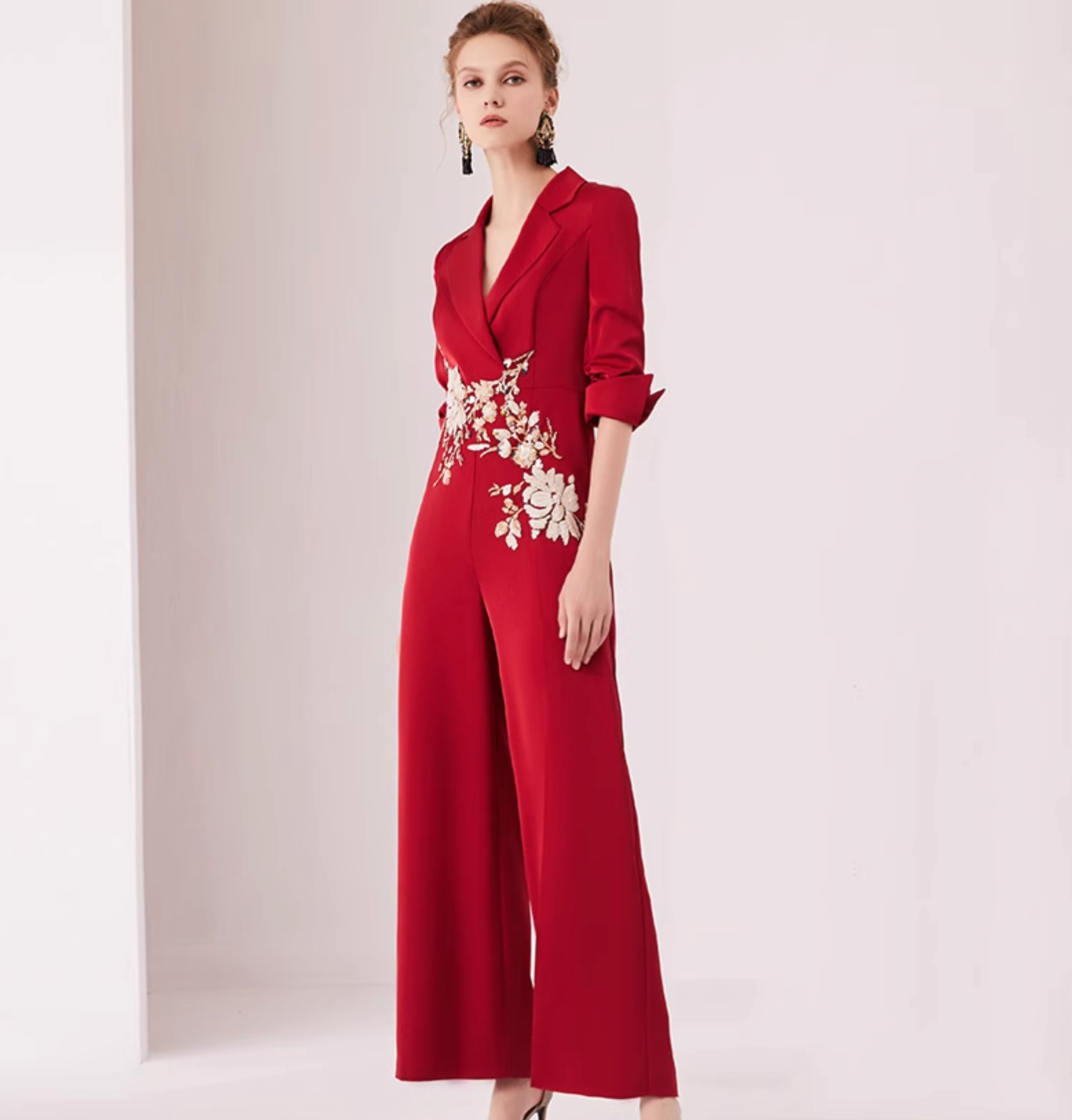 Zeitlose Eleganz trifft auf moderne Schneiderkunst in diesem eng anliegenden schwarzen Midi-Blazerkleid, das mit einem auffälligen weißen Revers, perlenbesetzten Knöpfen und strukturierten halben Ärmeln ausgestattet ist. Ideal für gehobene Soireen oder um in Besprechungsräumen Präsenz zu zeigen.