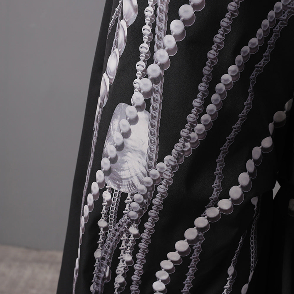 Plissiertes Oberteil mit ausgestellten Ärmeln und Maxirock-Set mit Taillengürtel – Rosiny