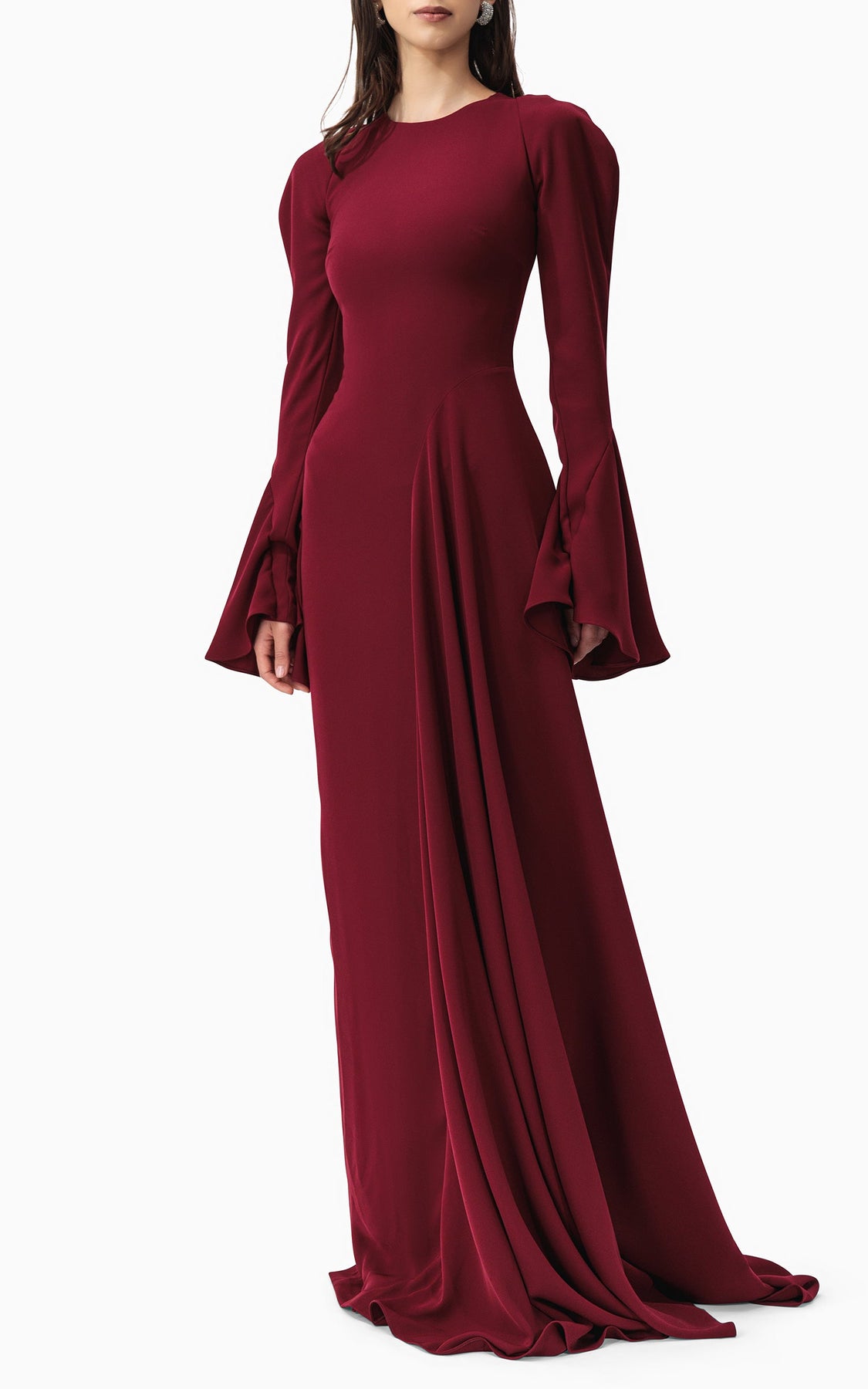 long-sleeve gown with puffed shoulders and flared cuffs – SERENA