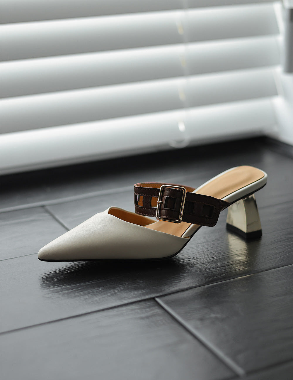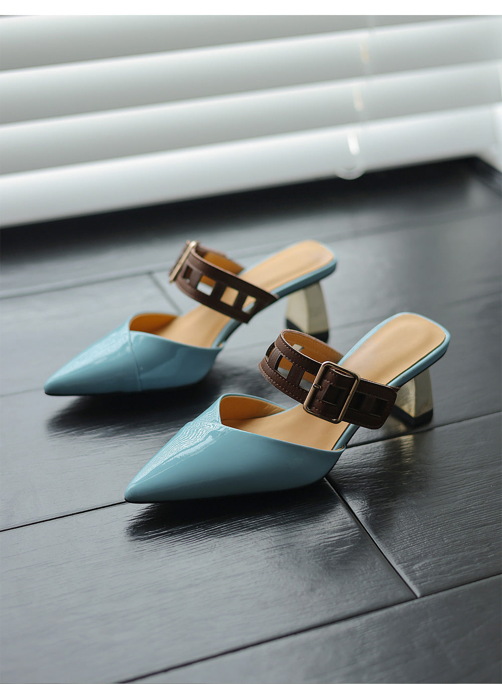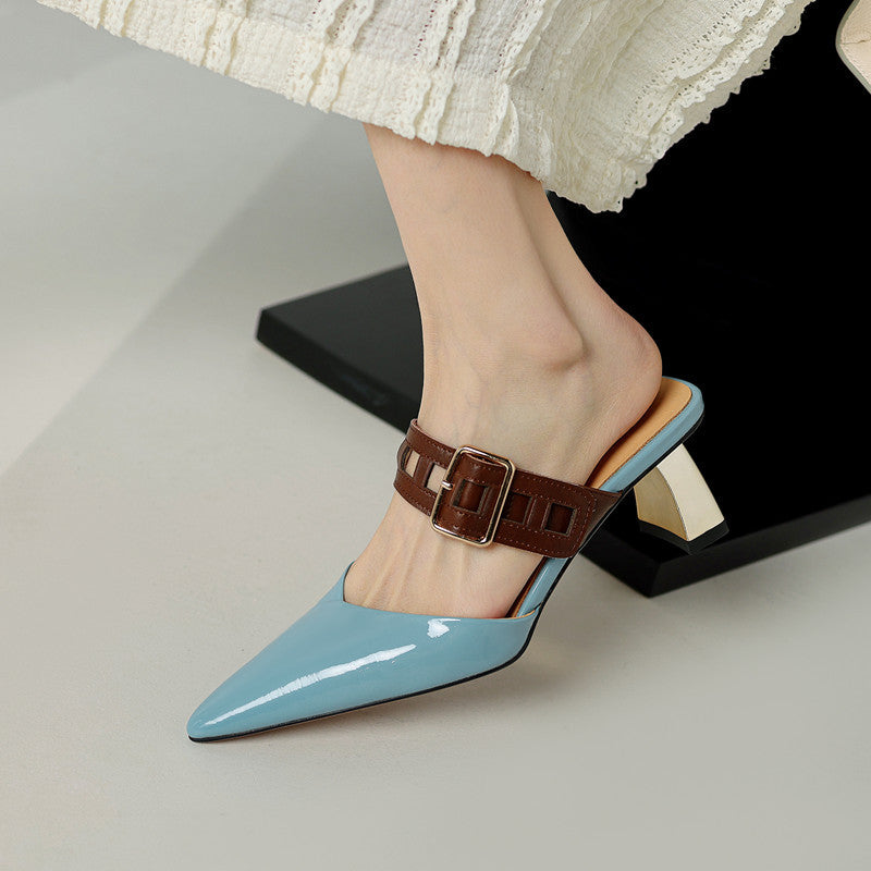 Cette élégante et sophistiquée chaussure à bout pointu est confectionnée en cuir verni noir brillant pour un look soigné. La caractéristique signature—une bordure en fourrure grise douce à l'avant—ajoute une touche luxueuse à ce design classique. Conçu avec un talon haut et élancé et une doublure douce de ton doré, ce soulier distinctif combine sans effort élégance et sophistication, que ce soit pour une tenue de soirée ou des occasions sophistiquées.