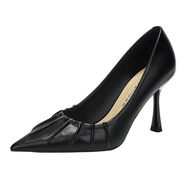 Cette élégante et sophistiquée chaussure à bout pointu est confectionnée en cuir verni noir brillant pour un look soigné. La caractéristique signature—une bordure en fourrure grise douce à l'avant—ajoute une touche luxueuse à ce design classique. Conçu avec un talon haut et élancé et une doublure douce de ton doré, ce soulier distinctif combine sans effort élégance et sophistication, que ce soit pour une tenue de soirée ou des occasions sophistiquées.