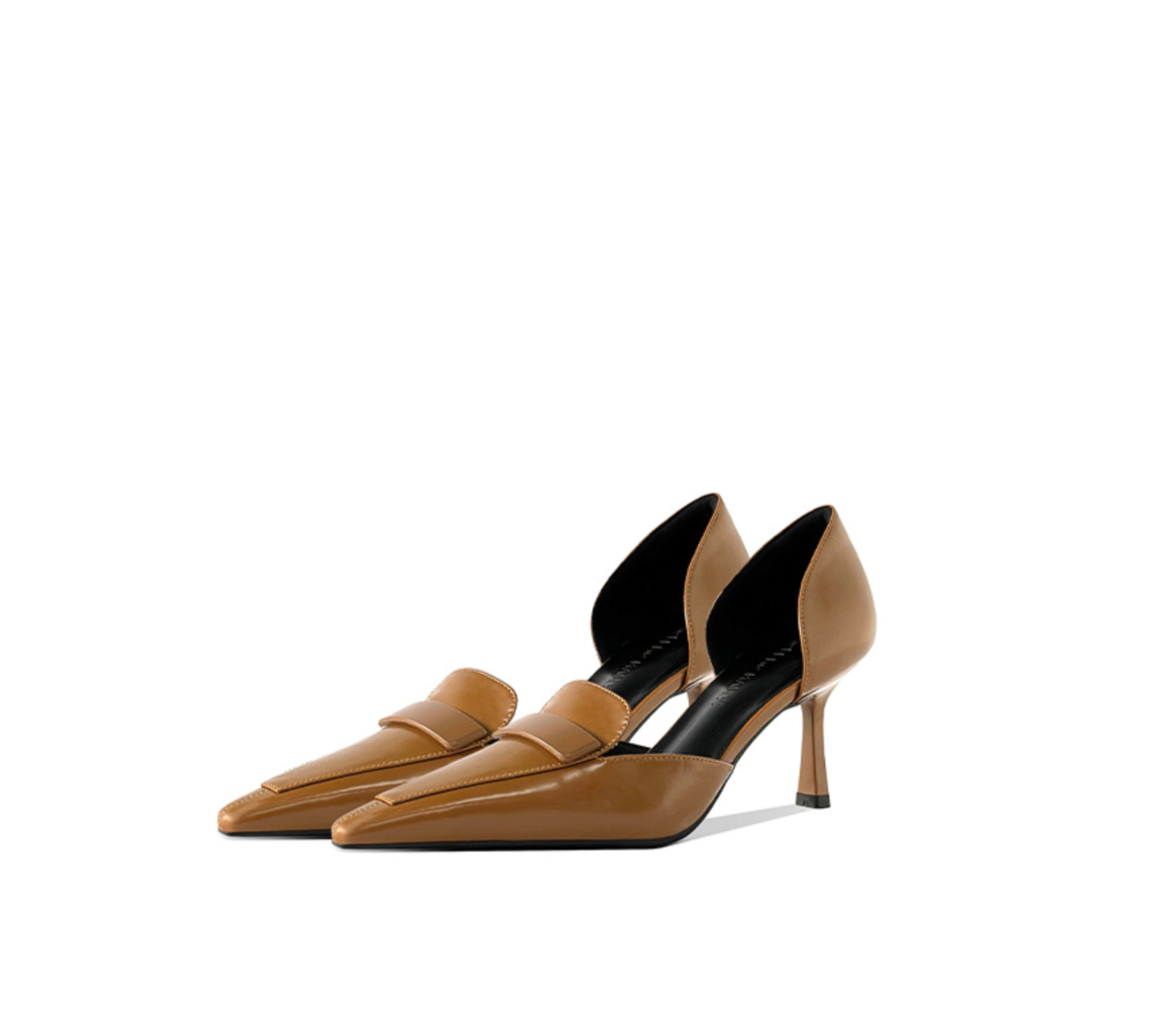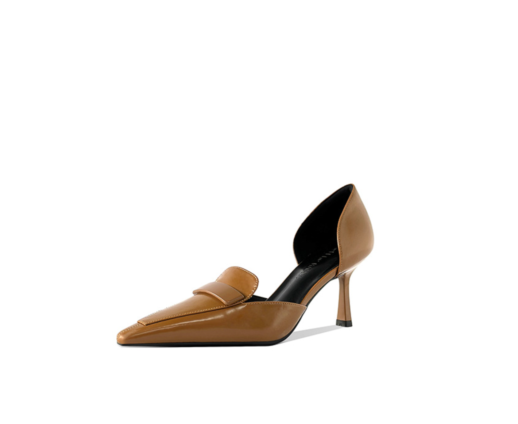 A fusion of classic sophistication and modern edge, the SIENNA loafer pumps redefine timeless style with a contemporary twist. Crafted from high-shine patent leather in a warm caramel brown hue, these heels offer a refined yet bold aesthetic, perfect for both professional and evening wear. Designed for comfort and versatility, these pumps feature a mid-height sculpted heel, providing just the right amount of lift without compromising on stability. The d’Orsay cut on the inner side creates a dynamic contrast, adding an unexpected and stylish edge while ensuring breathability and flexibility. The smooth leather lining and cushioned insole enhance all-day wearability, making them an ideal choice for business meetings, formal occasions, or effortlessly chic everyday outfits.